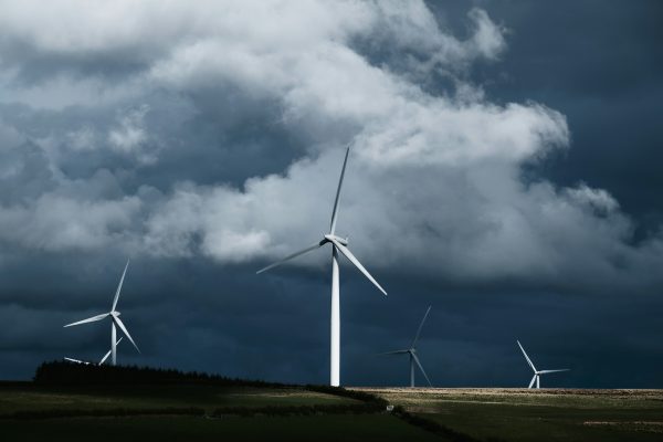 Wind turbines at dusk